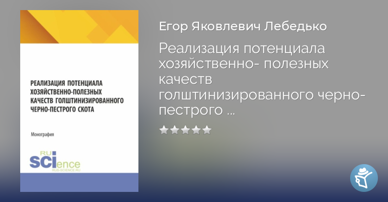 Реализация потенциала хозяйственно-полезных качеств голштинизированного черно-пестрого скота. (Аспирантура, Бакалавриат, Магистратура). Монография.