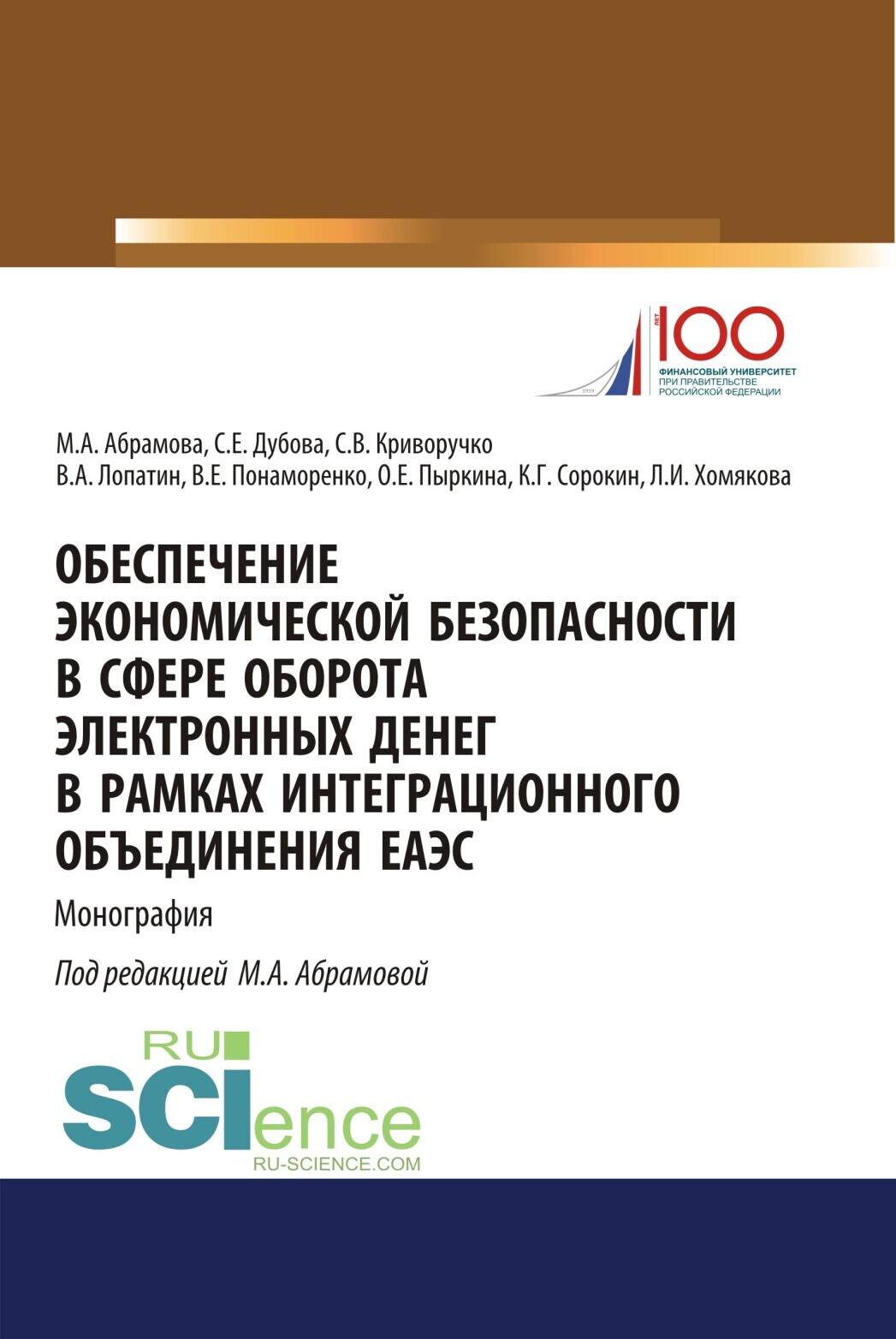 Обеспечение экономической безопасности в сфере оборота электронных денег в рамках интеграционного объединения ЕАЭС. (Бакалавриат, Магистратура, Специалитет). Монография.