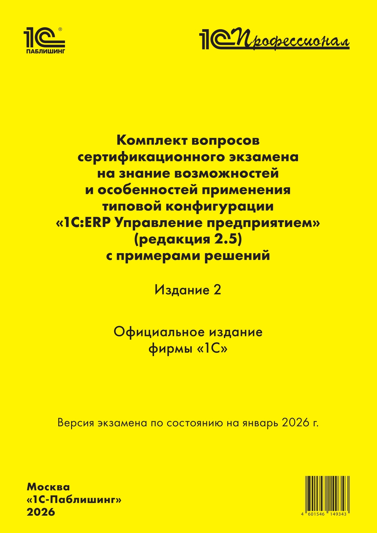 Комплект вопросов сертификационного экзамена «1С:Профессионал» на знание возможностей и особенностей применения типовой конфигурации «1С:ERP Управление предприятием» (ред. 2.5) с примерами решений. Издание 2 (+ epub). Версия экзамена – январь 2026 г.