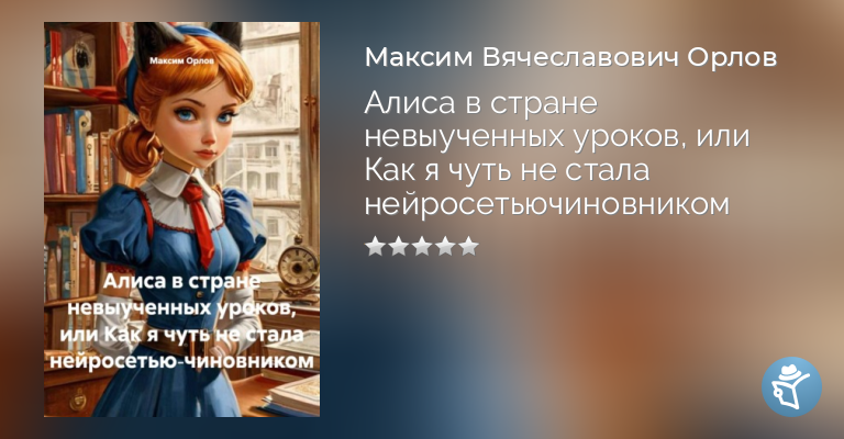 «Алиса в стране невыученных уроков, или Как я чуть не стала нейросетью‑чиновником» – ироничный роман о приключениях искусственного интеллекта в реалиях российской бюрократической системы.