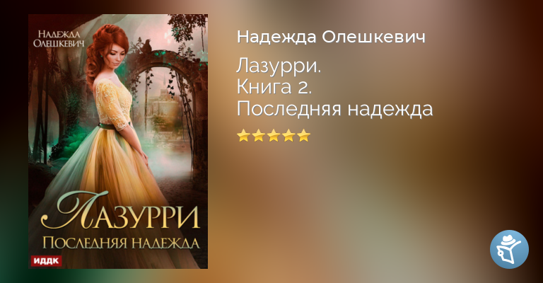 "Последняя надежда" – роман Надежды Олешкевич, вторая книга цикла «Лазурри», жанр попаданцы в другие миры, любовное фэнтези, приключенческое фэнтези.