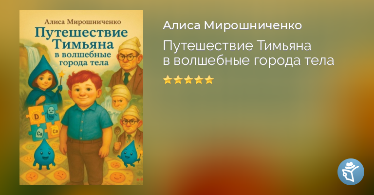 Это история для тех, кто хочет понять себя – с любовью, а не с упрёками.Мальчик по имени Тимьян отправляется в путешествие по волшебным городам внутри собственного тела. Он встречает героев – желудок-профессора, гормон сна, девочку Клетчатку и капельку воды, – которые помогают ему узнать, как работает организм, зачем нужны эмоции, еда, сон и забота о себе.Без диет, страшилок и скучных объяснений – только тепло, игра и знание, которое остаётся в сердце.Для детей от 7 лет и родителей.