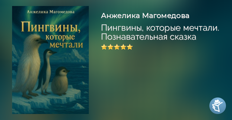 «Пингвины, которые мечтали» – первая часть доброй и познавательной повести для всей семьи, где волшебство переплетается с настоящими знаниями.Вместе с двумя любознательными пингвинятами вы отправитесь в путешествие по всем материкам планеты и сделаете для себя множество удивительных открытий.Это история о дружбе, воображении и нескончаемом любопытстве – рассказанная с теплом, юмором и любовью к природе.Книга для всех, кто мечтает, задаёт вопросы и открывает мир с открытым сердцем.