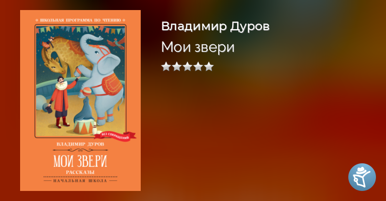 Владимир Дуров любил своих животных и никогда не мучил их. «Любовь, ласка и лакомство» – вот на чём он строил свою систему дрессуры. Владимир Леонидович написал много книг о своих любимцах, в том числе сборник «Мои звери», несколько рассказов из которого вошли в эту книжку. Здесь вы найдёте истории об умных, смешных и проказливых животных – и о человеке, который любил их и посвятил им свою жизнь и свой талант.