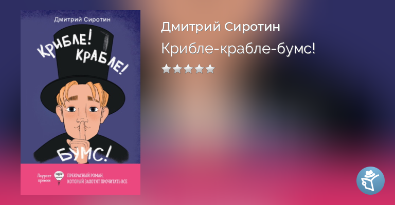 Главный герой сказочной повести Дмитрий Сиротина «Крибле-крабле-бумс!» Кай Иванович, оставшись один на земле, записывает подкаст «Последний человек», в котором рассказывает о своей жизни. Школа и первая любовь, болезнь, с которой никак не получается справиться, и экстрасенс Марта, театр, мама и, наконец, неведомый Сказочник, произносящий свое загадочное «Крибле, крабле, бумс!». Обыкновенная жизнь обыкновенного подростка становится вдруг таинственной и необъяснимой.