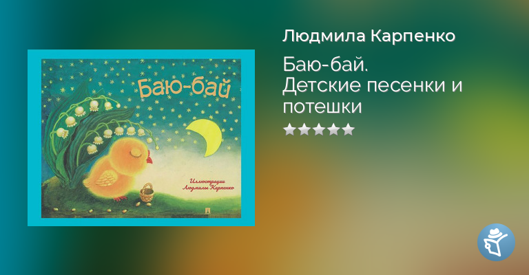 Книга детских колыбельных, песенок и потешек XIX-XX веков включает лучшие образцы русского фольклора. Колыбельная – это песня, с помощью которой убаюкивают ребенка. Колыбель – это детская люлька, которую мерно покачивали, помогая малышу заснуть. Поэтому в колыбельной очень важен ритм, и для ее исполнения не требуется каких-либо инструментов. Даль писал: «Только то в человеке прочно и надежно, что всосалось в природу его в первую пору жизни». Спетые мамой колыбельные люди помнят всю жизнь. Приятного чтения! Людмила Михайловна Карпенко – русский художник, иллюстратор. Дочь известного художника Михаила Михайловича Карпенко. Окончила рижскую художественную школу имени Яна Розенталя. Выпускница Московской государственной академии им. С.Г. Строганова. Проиллюстрировала более 70 детских книг. Участвовала в многочисленных выставках в России и за рубежом. Ее работы находятся в частных коллекциях многих стран мира. Круг ее профессиональных интересов преимущественно в иллюстрировании русских и английских сказок. Для дошкольного возраста.