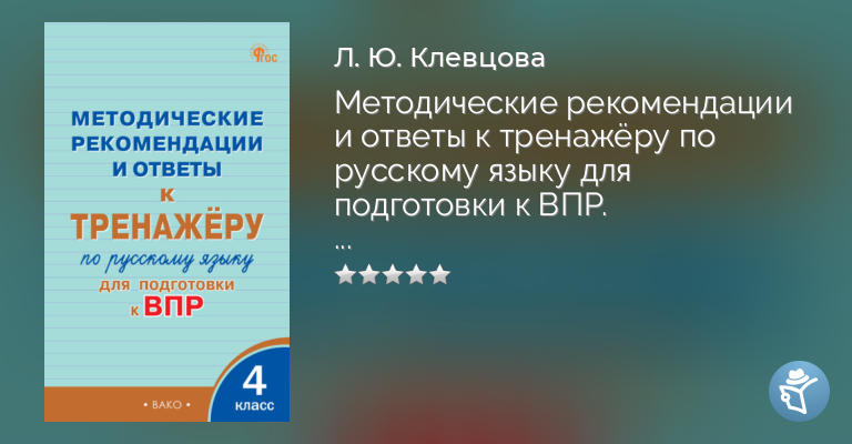 Методические рекомендации и ответы к тренажёру по русскому языку для подготовки к ВПР. 4 класс