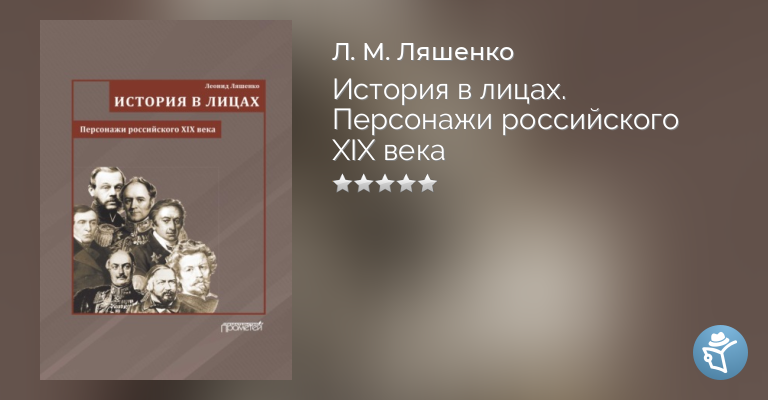 Книга Леонида Ляшенко содержит портреты российских государственных и общественных деятелей, а также деятелей русской культуры XIX в. В ней с учетом последних достижений науки рассказывается о людях, оставивших заметный след в истории нашей страны, а то и прославивших ее во всем мире. Книга будет интересна широким слоям читателей, интересующихся прошлым России, преподавателям истории и учащимся 8-9 классов средней школы, изучающим интереснейший предмет «История в лицах». Книга старается сделать прошлое нашей страны более живым и близким, подчеркивая неразрывную связь тех или иных моментов истории со взглядами и позициями людей, воспитуемых историей и одновременно делающих ее.
