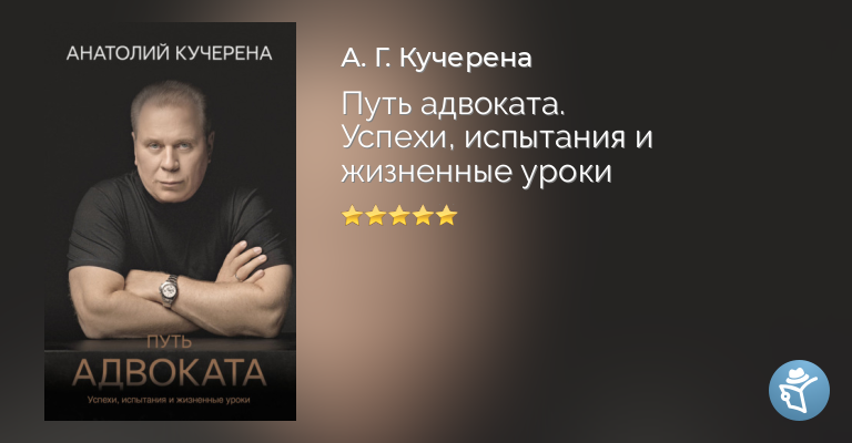 В книге «Путь адвоката» Анатолий Кучерена рассказывает о переломных моментах своей карьеры, о своих встречах со знаменитыми людьми, размышляет о путях достижения успеха и о роли адвоката в современном обществе.