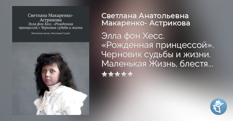 Моя небольшая книга рассказывает о маленькой и прелестной девочке, покинувшей этот мир в возрасте неполных восьми лет… Принцесса Гессенская и Рейнская, Элизабет жила более ста лет назад, (1895 -1903), но ее образ, по прежнему, нас волнует. Надеюсь, что вам будет интересна эта книга-альбом.С уважением к читателям, автор Светлана Макаренко-Астрикова.
