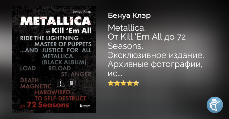 НЕЗАКОННОЕ ПОТРЕБЛЕНИЕ НАРКОТИЧЕСКИХ СРЕДСТВ, ПСИХОТРОПНЫХ ВЕЩЕСТВ, ИХ АНАЛОГОВ ПРИЧИНЯЕТ ВРЕД ЗДОРОВЬЮ, ИХ НЕЗАКОННЫЙ ОБОРОТ ЗАПРЕЩЕН И ВЛЕЧЕТ УСТАНОВЛЕННУЮ ЗАКОНОДАТЕЛЬСТВОМ ОТВЕТСТВЕННОСТЬ. Издание о творчестве Metallica – от дебютной пластинки до лайв-альбомов и даже больше. Краткая инструкция по использованию: 1. Наденьте наушники. 2. Переслушайте группу с нуля, песня за песней, пока читаете их музыкальный альманах. 3. Изучите каждую страницу с ярким «рокерским» оформлением и архивными фотографиями коллектива. 4. И узнайте, наконец: – Зачем басист Джейсон Ньюстед перед началом каждой репетиции погружал свои гитары в ванну с кипятком?