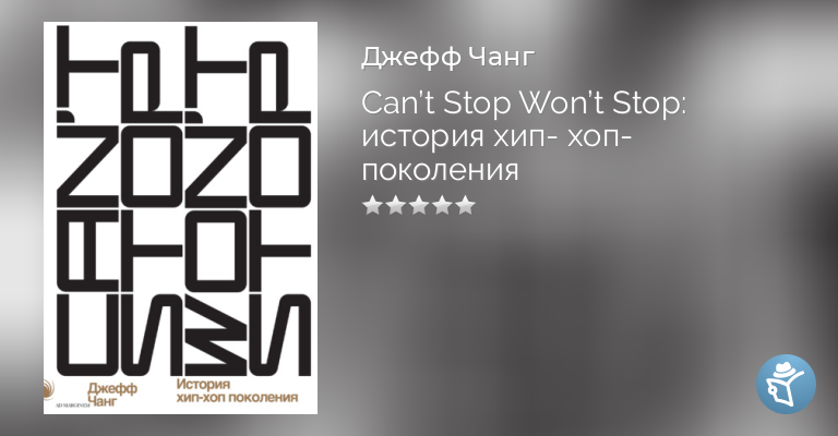 Книга историка, журналиста и музыкального критика Джеффа Чанга «Can’t Stop Won’t Stop» предлагает всесторонний анализ политических и социальных событий, создавших новое культурное направление. Хип-хоп зародился в Южном Бронксе в начале 1970-х годов – во времена расцвета борьбы за гражданские права – как новый способ отвергнутых и забытых слоев общества заявить о себе. Но вскоре он распространился по всей стране, захватив территории Лос-Анджелеса, Чикаго, а затем вышел за пределы США. Впервые изданная в 2005 году книга Джеффа Чанга быстро стала классическим исследованием о влиянии хип-хопа на современную Америку. Она в увлекательной форме рассказывает о ключевых элементах жанра – диджеинге, бибоинге, эмсиинге, граффити – и о его главных представителях – Куле Герке, Африке Бамбаатаа, Public Enemy и других. Хип-хоп стал мощной силой, объединяющей людей. Он сформировал поколение, не ограниченное строгими временными рамками. Как пишет Чанг, в хип-хоп-поколение входят «все, кто в теме», его голос до сих пор звучит и будет звучать, покуда «следующее поколение [не] скажет нам, что оно закончилось».