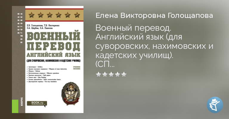 Направлено на развитие первичных навыков устного и письменного перевода. Позволит освоить необходимый объем терминологии и сформировать первичные переводческие навыки и умения: письменного и устного перевода, а также устного реферирования военных материалов на русском и на английском языках. Содержит тренировочные упражнения для совершенствования произносительных навыков, систематизации грамматических навыков и актуализации лексики, речевые упражнения для развития коммуникативных компетенций, контрольные упражнения, а также словарь сокращений, глоссарий и лексический тренажер. Соответствует ФГОС СПО последнего поколения. Для преподавателей и учащихся старших классов, обучающихся в довузовских учебных организациях Министерства обороны Российской Федерации.