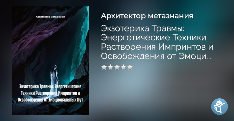 Подробно описаны анатомия энергетического отпечатка, принципы безопасной работы (заземление, Внутренний Свидетель), а также ключевые техники: титрация, пендуляция и соматический резонанс для высвобождения замороженной энергии. Мануал также включает продвинутые практики использования звука, намерения и методов освобождения от эмоциональных пут. Предназначен как мощное дополнение к квалифицированной психотерапии для достижения полного энергетического суверенитета и интеграции.