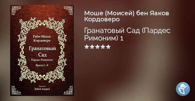 Пардес Римоним» («Сад гранатовых деревьев») – главный труд Рабби Моше Кордоверо (Рамак, 1522–1570), написанный в Цфате в середине XVI века. Это первая систематическая энциклопедия каббалы, в которой древние мистические учения были собраны и упорядочены в стройную систему.