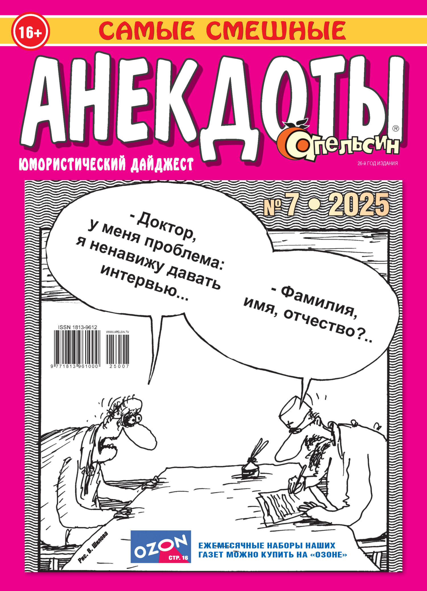 Еженедельный юмористический дайджест «Апельсин Анекдоты» – это не просто журнал, а ваш персональный генератор отличного настроения на всю неделю. Идеальный спутник для тех, кто ценит качественный юмор. В каждом выпуске собрано более 300 отборных анекдотов – от классики до самых свежих мемов. Кроме анекдотов, вас ждут улетные байки из жизни, ироничные карикатуры, забавные фотоприколы и юморески, которые заставят улыбнуться даже самого серьезного человека. Юмор в «Апельсине» понятный и жизненный, поэтому журнал станет поводом посмеяться всей семьей или блеснуть остроумием в компании друзей. Участвуйте в регулярных конкурсах и выигрывайте призы за лучшие шутки от читателей! «Апельсин» – это витамин С для души. Добавьте яркости в свои будни!