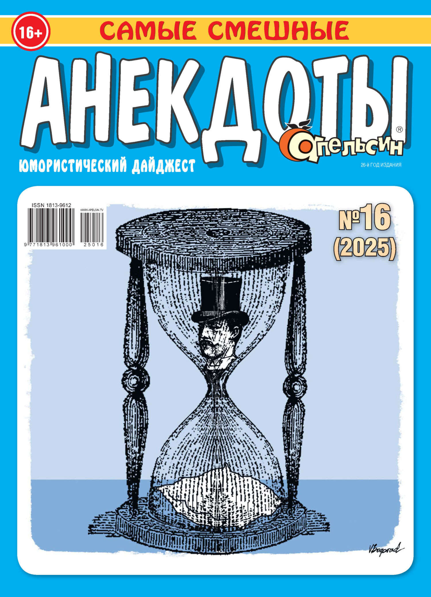 Еженедельный юмористический дайджест «Апельсин Анекдоты» – это не просто журнал, а ваш персональный генератор отличного настроения на всю неделю. Идеальный спутник для тех, кто ценит качественный юмор. В каждом выпуске собрано более 300 отборных анекдотов – от классики до самых свежих мемов. Кроме анекдотов, вас ждут улетные байки из жизни, ироничные карикатуры, забавные фотоприколы и юморески, которые заставят улыбнуться даже самого серьезного человека. Юмор в «Апельсине» понятный и жизненный, поэтому журнал станет поводом посмеяться всей семьей или блеснуть остроумием в компании друзей. Участвуйте в регулярных конкурсах и выигрывайте призы за лучшие шутки от читателей! «Апельсин» – это витамин С для души. Добавьте яркости в свои будни!
