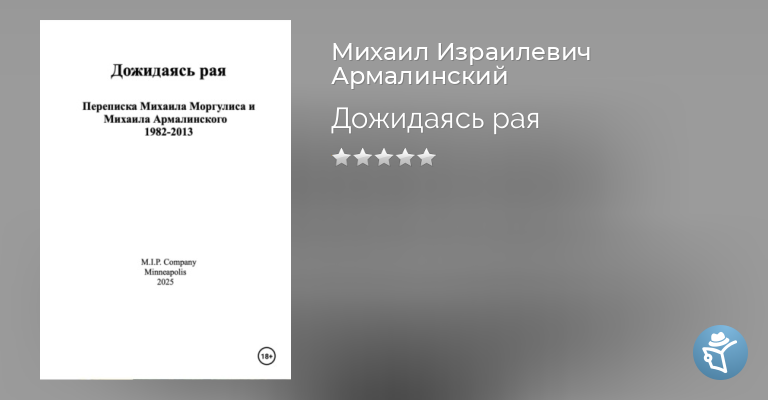 Переписка 1982-2013 годов Михаила Зиновьевича Моргулиса (1941-2021) и Михаила Израилевича Армалинского (Пельцмана), р. 1947. Моргулис, литератор, издатель ежемесячника Литературный Курьер и многочисленных религиозных книг , христианский проповедник, эмигрировал в США в 1977 году, Армалинский, литератор и издатель – в 1976-ом. Все письма воспроизведены факсимильно. В качестве дополнения перепечатан рассказ Михаила Моргулиса Задница, которая их погубила. Он был впервые опубликован под псевдонимом в Литературном журнальце Михаила Армалинского General Erotic.