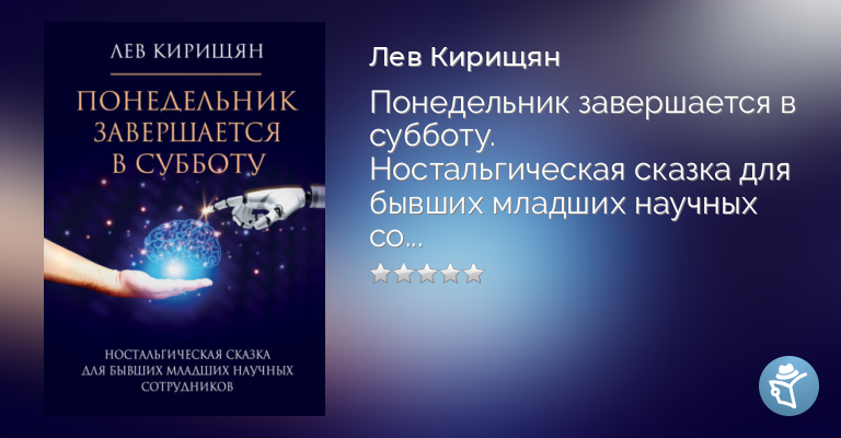 Один из бывших младших научных сотрудников, которым адресовали свою знаменитую сказку братья Стругацкие, решил откликнуться на их книгу. Это не продолжение и не пародия – это «техно-исторический экскурс развития процессорной техники в СССР, в котором угадывается ряд автобиографических сюжетов» – так отозвался о книге Льва Кирищяна его научный соратник. «Сказка “Понедельник завершается в субботу” великолепно передает атмосферу НИИ в Советском Союзе» – так откликнулся на этот труд другой коллега. «Автор с невероятной проницательностью рассматривает причины и последствия перехода к новому типу экономики, где в центре стоит создание и обработка информации» – отмечает третий. Эти рецензенты (их отзывы в конце книги), как и сам автор – ныне мэтры в мире информационных технологий. Но в душе они – всё те же веселые мэнээсы, которые зачитывались сказкой про НИИЧАВО. Они легко опознали свои былые учреждения в Научно-исследовательском институте Числовой Электроники, Робототехники, Телеметрии и Автоматики, сокращенно НИИЧЭРТА. Опознаете и вы – все, кому посвящена эта смешная, грустная и очень познавательная сказка-быль.