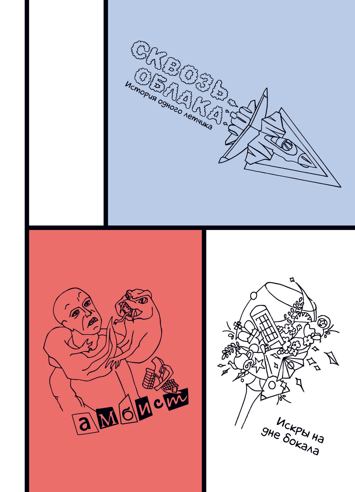 Cборник включает три повести: «Искры на дне бокала», «Сквозь облака: история одного лётчика», «Амбист». Истории о любви, приключениях героев, их дружбе, предательствах и жизненных испытаниях. Все события и персонажи вымышлены; любое сходство с реальными людьми или событиями – случайность.