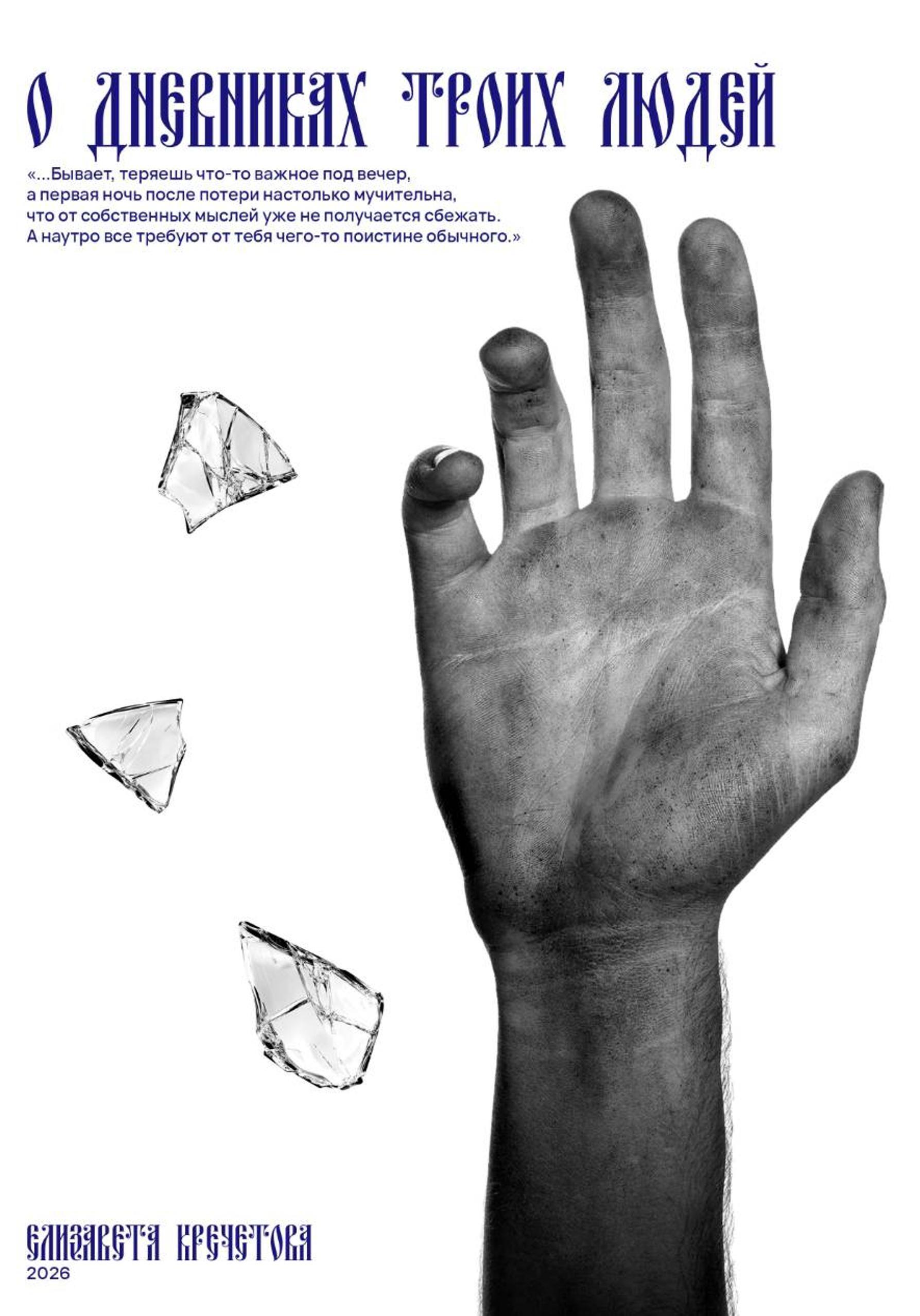 Перед вами отрывки из трех дневников, написанных разными, незнакомыми друг с другом людьми: пациентом психдиспансера, обреченной взрослой женщиной и подростком из неблагополучной семьи. Почему именно они? Что связывает людей, никогда не встречавшихся, но поразительно схожих в своих переживаниях? Все они борются за собственное счастье, неосознанно познают себя, рефлексируют, чтобы прийти к итогу, каждый к своему.