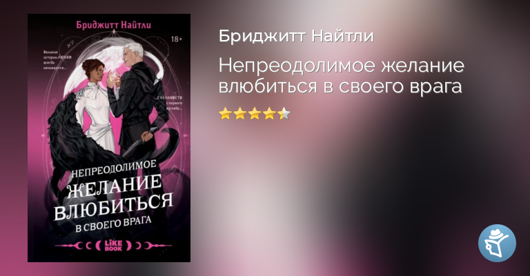 «Остроумная, оригинальная и невероятно веселая история, "Непреодолимое желание влюбиться в своего врага" стала моей новой обсессией! Найтли создала такой мир, из которого не хотелось уходить, а ее персонажи не давали уснуть допоздна, вызывая улыбку своими колкими диалогами. Настоящая жемчужина среди книг». – Кристен Сиккарелли, автор романа «Бессердечный охотник»