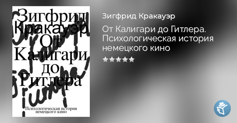 Одна из главных монографий о немецком кино и самая известная книга Зигфрида Кракауэра (1889–1966) была написана им в эмиграции и вышла в США в 1947 году. Автор, социолог и теоретик кинематографа и культуры, анализирует внутренние установки и паттерны немецкого общества, объекты коллективного вытеснения, нашедшие отражение в классических фильмах догитлеровской эпохи. Для Кракауэра кино – сложный и многогранный феномен, он писал о разных его аспектах («Веймарские эссе», «Теория кино» и др.). В этой книге кино – прежде всего проявление массовой культуры, искусство a priori коллективное, которое, будучи плодом совместных усилий, утоляет и одновременно провоцирует скрытые желания широкого зрителя.