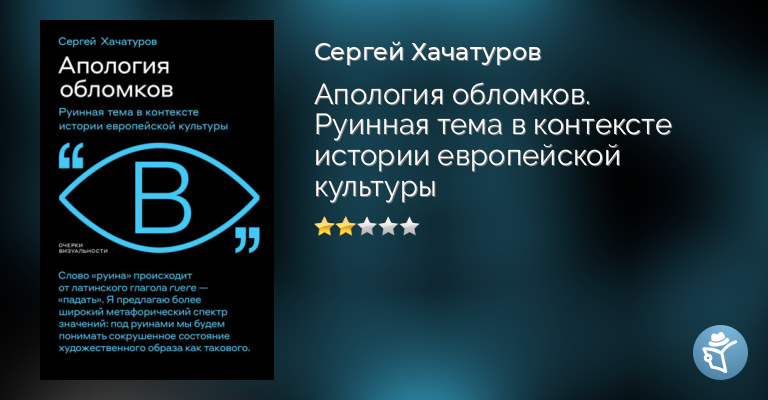 Руина и руинность определяют свойства исторической психологии людей в разные эпохи – людей, чье существование оказывается во многом призрачным, знания обрывочными, а понимание бытийственных вопросов – дискретным. Что можно прочесть в руинах? Какие аффекты они пробуждали в разные века? Почему руина может стать баррикадой на пути марширующих тоталитарных доктрин? Как обломки и развалины встраиваются в сегодняшнюю парадигму объектно-ориентированного искусства? Книга Сергея Хачатурова – это собрание лекций-эссе, выстроенных в хронологическом порядке и реконструирующих историю руинной темы. Отходя от сугубо археологического толкования понятия как останков разрушенного здания, автор предлагает читателю пройти по пути, которым в познании руин двигалась европейская культура – от античности до современного искусства. Сергей Хачатуров – историк искусства, доцент кафедры истории отечественного искусства исторического факультета МГУ, автор книги «Романтизм вне романтизма», вышедшей в «НЛО».