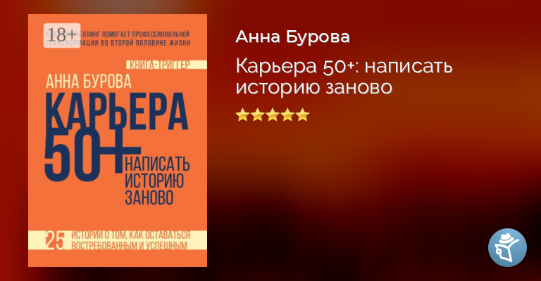 Книга, которую вы держите в руках, не похожа на обычный нон-фикшн. В ней нет описания концепций и алгоритмов, но зато есть истории из профессиональной жизни автора и ее клиентов. Автор – Анна Бурова – коуч с 30-летним опытом консультирования. В книге 25 историй о том, как пятидесятилетние решают вопрос профессиональной трансформации во второй половине жизни. Книга станет для читателя зеркалом для самоанализа и поможет увидеть новые возможности профессионального развития после пятидесяти лет.