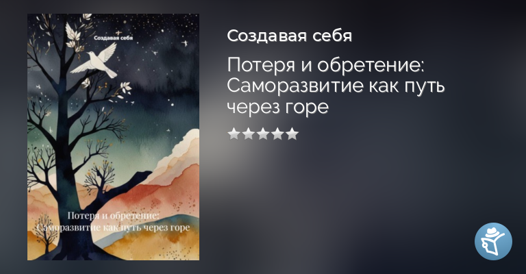 «Потеря и обретение: саморазвитие как путь через горе» – неклинический гид для тех, кто пережил утрату (человека, цели, веры). На основе десяти частей раскрывает, как превратить боль в ресурс для переосмысления ценностей, восстановления идентичности и поиска нового смысла. Практики микродействий, нарративного переписывания, телесных ритуалов и работы с природой помогают мягко реинтегрироваться в жизнь, не отрицая горя. Акцент на построении устойчивости через ежедневные ритуалы, а не «исцеление». Для тех, кто готов нести утрату как часть пути. Подходит для самостоятельной работы после острой фазы скорби.