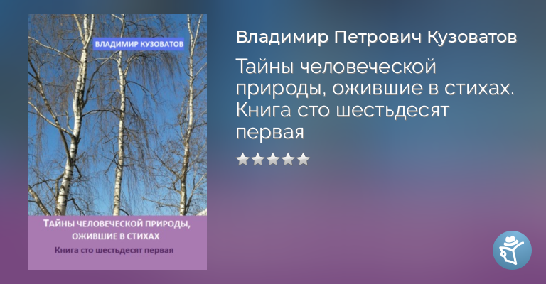 Книга"Тайны человеческой природы, ожившие в стихах. Книга сто шестьдесят первая", посвящённая внутреннему миру человека и красоте природы, рассчитана на широкий круг любителей поэзии".
