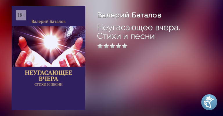 В новой, 12-ой, книге известного русского поэта Валерия Баталова «НЕУГАСАЮЩЕЕ ВЧЕРА» представлены малоизвестные и неизвестные стихи и песни, написанные в основном, в ранний период его творчества. Они пронизаны главной для автора темой – темой любви к России и её природе.Читатель окунётся в яркий, образный, многогранный лирический мир автора. Вместе с автором вдохновится природой России и красотой российских женщин. И проникнется верой автора, что лучше, милей родной России ничего нет на земле.