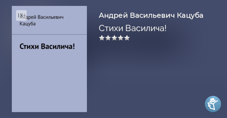 Я Андрей Кацуба, «Василич», мой сборник жизненных стихов для тех, кто любит, чувствует, помнит прошлое но живет настоящим. Здесь каждый найдет то, что близко именно ему, окунуться в детство, отпустить мысли в философское путешествие и прочувствовать минуты первой влюбленности.
