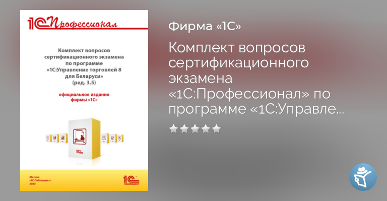 Комплект вопросов сертификационного экзамена «1С:Профессионал» по программе «1С:Управление торговлей 8 для Беларуси» (ред. 3.5) с примерами решений (+ epub). Версия экзамена – сентябрь 2025 г.