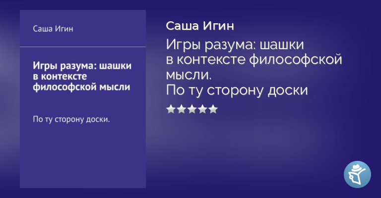 Приветствую любителей шашек в мире, где простота формы скрывает безграничную глубину мысли. Этот сборник предназначен для всех, кто видит в игре не только развлечение, но и возможность для саморазвития.Изучая философию шашечной игры, вы оттачиваете свой ум, развиваете абстрактное мышление и учитесь видеть скрытые взаимосвязи там, где другие видят лишь черно-белые клетки.Это путешествие внутрь себя через призму древней и мудрой игры.