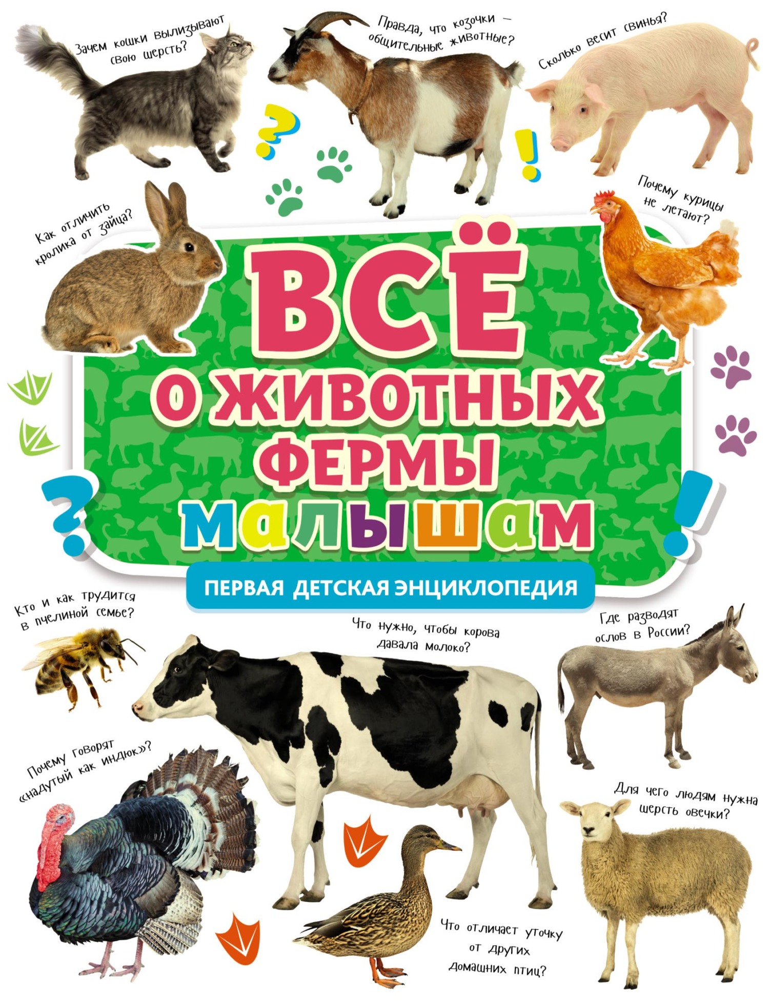 Перед вами познавательная и увлекательная книга. С её помощью малыш откроет для себя интереснейший мир животных. Энциклопедия познакомит ребёнка с самыми разными обитателями фермы – с курицей, коровой, пчёлами и даже с домашним северным оленем. Книга расскажет, как отличить домашнего кролика от зайца и почему уточкам всегда нужно находиться у воды. Здесь найдутся ответы на множество вопросов маленького читателя: почему курицы не летают, как животные общаются между собой, зачем кошки вылизывают шерсть и многие другие.