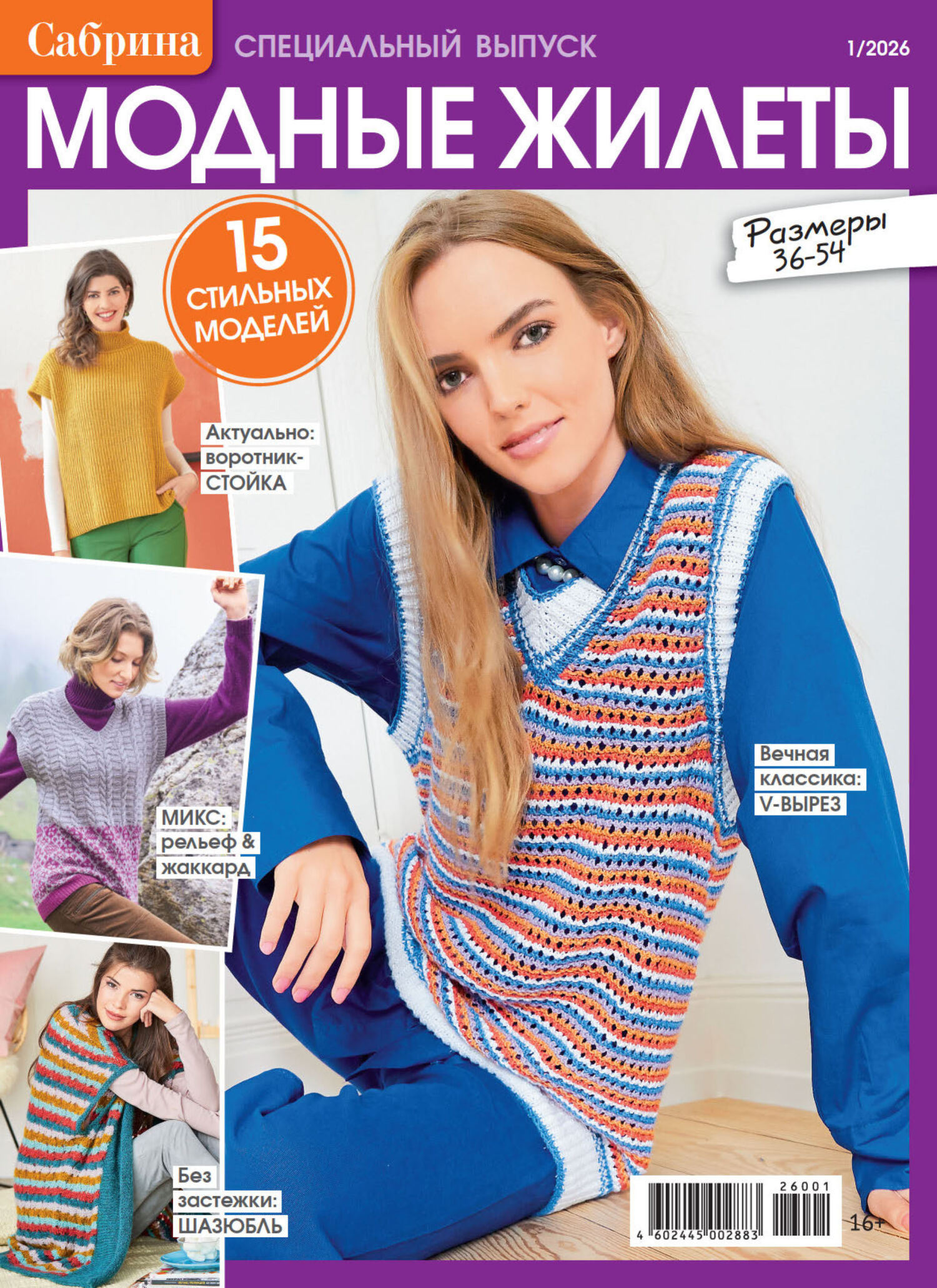 Многие из нас давно оценили преимущества вязаных моделей без рукавов. Ничего удивительного: они обеспечивают необходимое тепло и при этом в них не бывает слишком жарко. Жилет – чрезвычайно удобная в носке вещь, которая не сковывает движений и легко комбинируется практически с любыми предметами гардероба. Сегодня всевозможные безрукавки остаются на пике актуальной моды, так что мы решили посвятить им отдельный специальный выпуск журнала «Сабрина». В нем представлены и жилеты без застежки – от элегантных до спортивных, и модели на пуговицах – разные по длине и силуэту, совсем простые и с фантазийными узорами и мотивами, одноцветные и в полоску. Выбирайте с интересом, вяжите по нашим подробным инструкциям и наглядным схемам и носите с большим удовольствием!