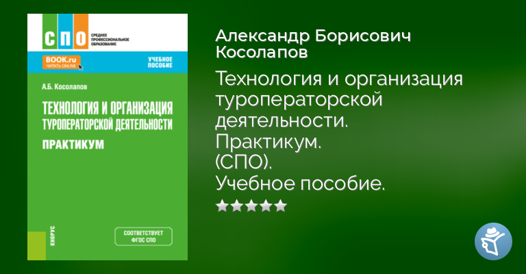 Приведены контрольные вопросы, ситуации для анализа, деловая игра «Организация работы туроператора», тесты и практические задания для аудиторной и самостоятельной работы по основным направлениям туроператорской деятельности. В практикум включены темы для обсуждения, задания и ситуационные задачи, тесты, контрольные вопросы и кейсы, приведены ответы на отдельные вопросы. Их можно использовать в качестве эталонов или опорного конспекта для выбора стратегии и тактики будущего профессионального поведения, позволяющего достичь максимально возможного успеха. Некоторые ответы фрагментарны, что дает возможность студенту выбрать общее направление поиска мно-говариантного решения. Соответствует ФГОС СПО последнего поколения. Для студентов СПО, обучающихся по специальности «Туризм».