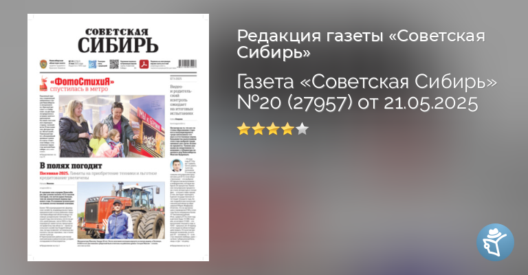 Газета «Советская Сибирь» №20 (27957) от 21.05.2025