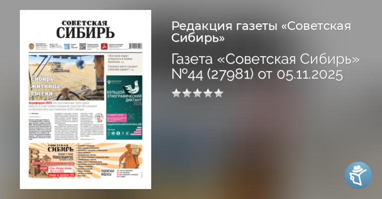 Газета «Советская Сибирь» №44 (27981) от 05.11.2025