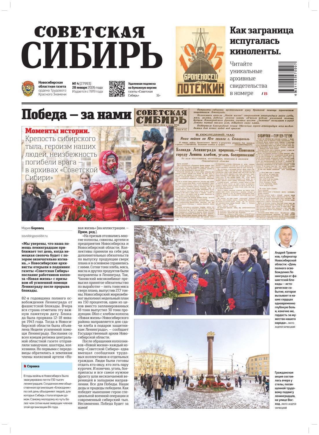 Газета «Советская Сибирь» №04 (27993) от 28.01.2026