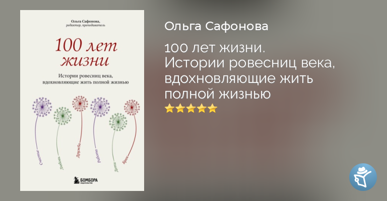 «100 лет жизни» – это не руководство по здоровому образу жизни и не сборник секретов долголетия. Это честные и трогательные истории о том, как прожить жизнь, наполненную смыслом, несмотря на все трудности и испытания. Это возможность оглянуться на свой пройденный путь и понять, что у нас есть только один шанс на счастье и время летит быстрее, чем мы думаем.