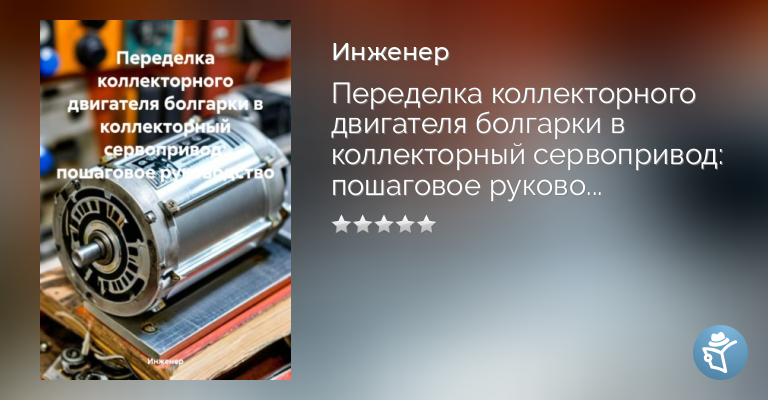 Эта книга представляет собой подробное руководство по переделке коллекторного двигателя болгарки в коллекторный сервопривод. В ней описаны все этапы процесса, от подготовки двигателя до настройки и тестирования готового сервопривода. Книга предназначена для радиолюбителей, студентов и специалистов в области электротехники и робототехники, интересующихся созданием собственных сервоприводов.