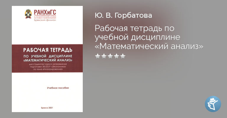 Рабочая тетрадь по учебной дисциплине «Математический анализ»