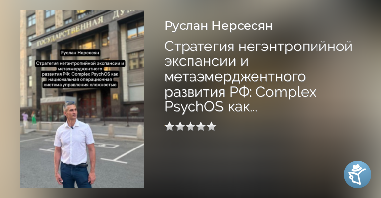 Стратегия негэнтропийной экспансии и метаэмерджентного развития РФ: Complex PsychOS как национальная операционная система управления сложностью