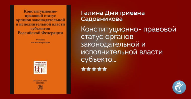 Учебник подготовлен по результатам исследования конституционно-правового статуса органов законодательной (представительной) и исполнительной власти субъектов РФ. Изложение теоретических вопросов сопровождается анализом законодательства и судебной практики. Освоить учебный материал и повысить качество самостоятельной работы студентам помогут контрольные вопросы и задания. Содержание соответствует требованиям федерального государственного образовательного стандарта высшего профессионального образования третьего поколения по направлению подготовки 030900 «Юриспруденция», квалификация (степень) «магистр». Для студентов, слушателей, аспирантов, преподавателей юридических вузов, а также депутатов, государственных и муниципальных служащих.