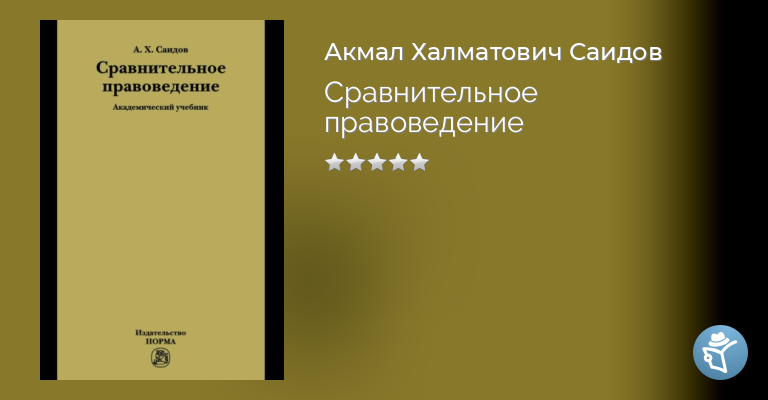 В академическом учебнике дано понятие сравнительного правоведения как метода исследования, науки и учебной дисциплины. Книга состоит из Обшей и Особенной частей: первая посвящена предмету, теории и истории сравнительного правоведения, вторая – современной юридической географии мира. В Особенной части изложена характеристика основных правовых семей. Отдельные главы посвяшены национальной правовой системе России и Узбекистана. Для юристов – специалистов в области сравнительного правоведения, истории и философии права, отраслевых юридических наук и международного права. Рекомендуется студентам, аспирантам, преподавателям юридических вузов и факультетов.