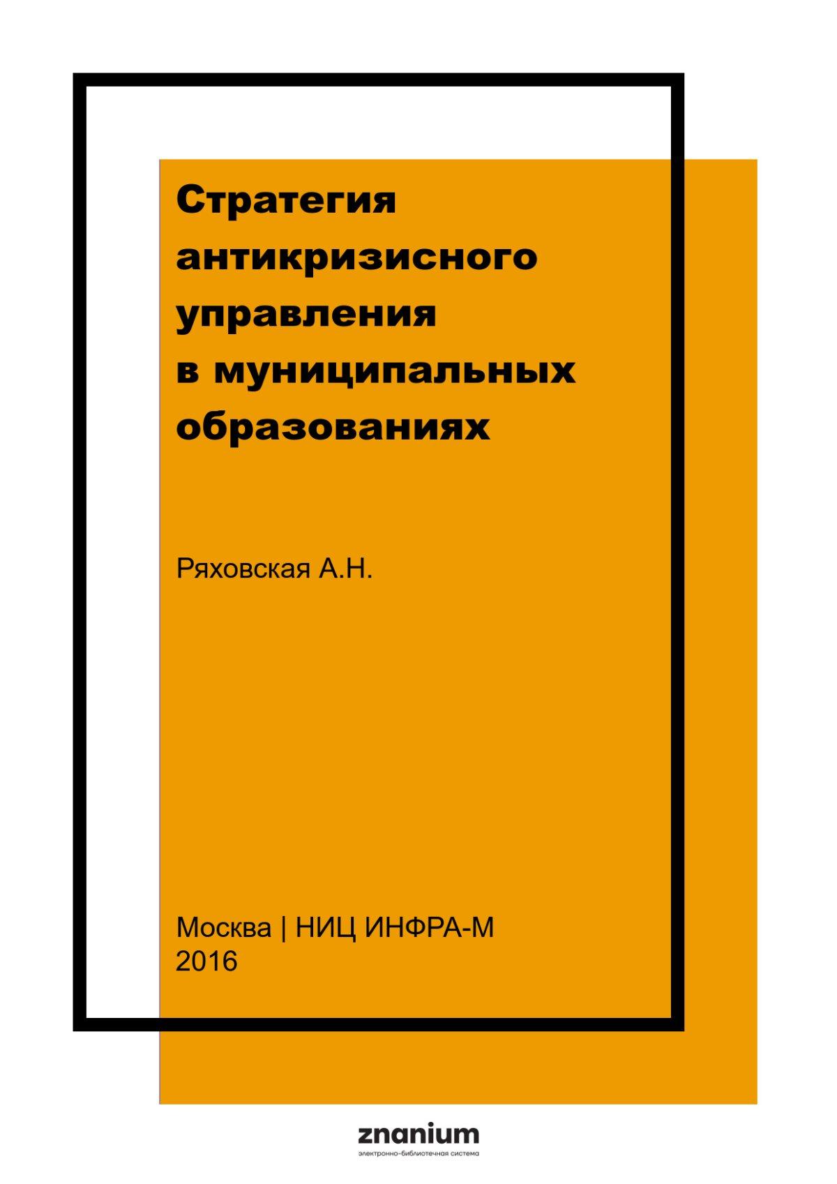 Монография посвящена обобщению результатов фундаментального исследования актуальной проблемы рыночной экономики – антикризисного управления в муниципальном образовании. В ней дано системное научное обоснование решения этой проблемы, которое сформулировано на концептуальном уровне. В книге представлен обобщенный материал, основанный на анализе современных взглядов на проблему антикризисного управления. Ее содержание раскрывает закономерности и особенности антикризисного управления в муниципальном образовании. Книга адресована, прежде всего антикризисным управляющим и другим категориям государственных служащих, представителям бизнеса и предпринимательства, профессорско-преподавательскому составу, аспирантам, слушателям и студентам. Положения, выводы и рекомендации будут полезны также для политиков, экономистов, социологов, юристов, психологов. Они изложены с учетом требований Государственных образовательных стандартов и могут быть использованы в образовательном процессе системы профессиональной переподготовки и повышения квалификации государственных и муниципальных служащих и преподавателей вузов.