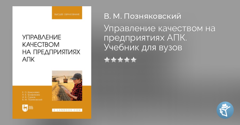 Настоящий учебник предназначен для изучения дисциплин по менеджменту качества продукции и услуг на предприятиях АПК – производителей сельскохозяйственной продукции, пищевой, перерабатывающей промышленности, торговли и общественного питания. Издание предназначено для студентов вузов (уровень подготовки бакалавриат и магистратура), а также для аспирантов, научных работников, экспертов, специалистов производственной сферы и бизнеса, чья деятельность связана с вопросами обеспечения качества, продвижения продукций и услуг в условиях рыночных отношений.