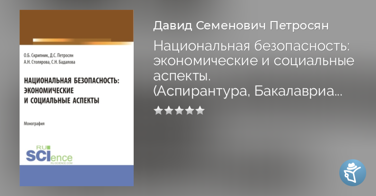 Национальная безопасность: экономические и социальные аспекты. (Аспирантура, Бакалавриат, Магистратура). Монография.